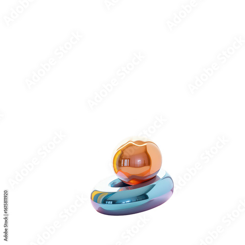 Geometric shapes in vibrant metallic hues.