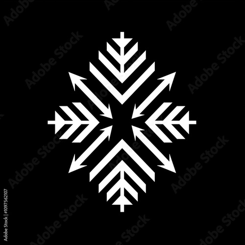 Geometric Snowflake Design Black and White Vector Illustration