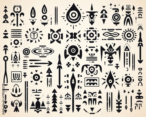 Geometric tribal marks, repeating vector graphic, on alabaster hue , vector and illustration