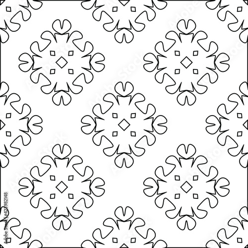 Geometric vector pattern with triangular elements. Seamless abstract ornament for wallpapers and backgrounds. Black and white colors.