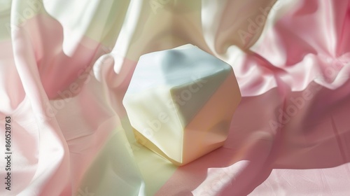 Geometric White Polygon on Soft Pink and Cream Satin Fabric