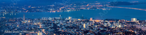 George Town Penang Malaysia Aerial View at Blue Hour