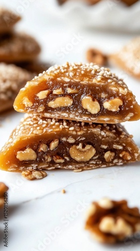 Georgia Independence Day Close-up of nut-filled pastry with sesame seeds