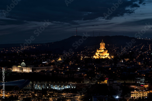 Georgia, Tbilisi, cityscape with Holy Trinity Cathedral at night