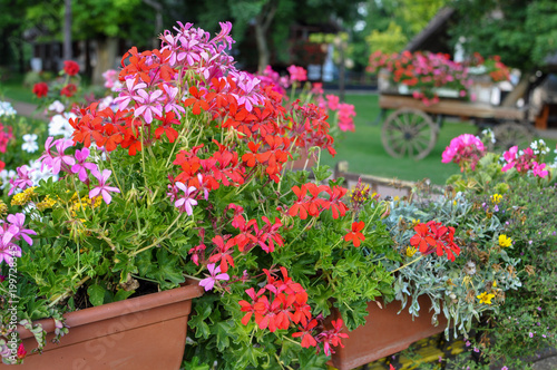 Geranium (Pelargonium x hortorum) ; An outstanding colorful red/pink flower buds. Beautiful brightly coloured and eye-catching of flora.