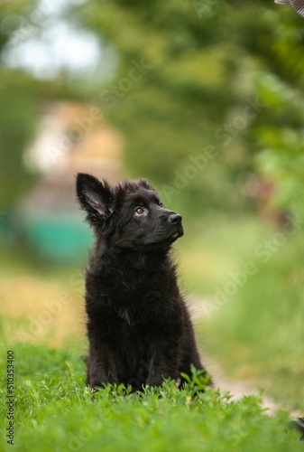 German shepherd puppies on green grass