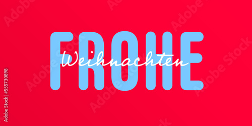 German Text : Frohe Weihnachten, with white and blue text on a red background