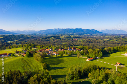 Germany, Bavaria, Hechenberg, Drone view of countryside village in summer