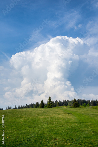 Germany, Remote black forest landscape and thunderstorm cloud