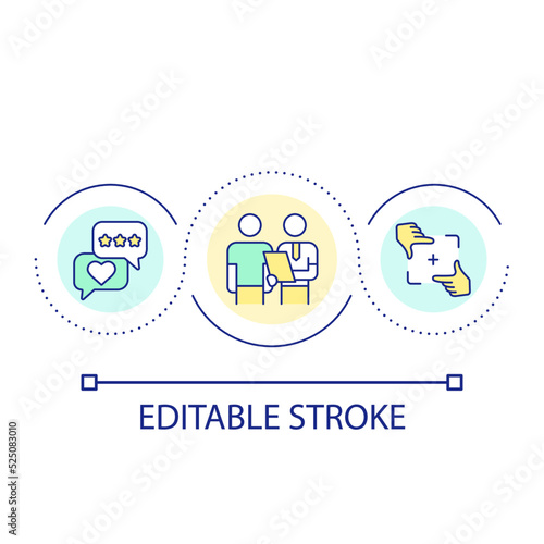 Get customer feedback loop concept icon. Clients questionnaire abstract idea thin line illustration. Evaluating satisfaction and experience. Isolated outline drawing. Editable stroke. Arial font used