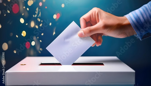 Get out the vote concept - Close-up of hand dropping ballot into ballot box.