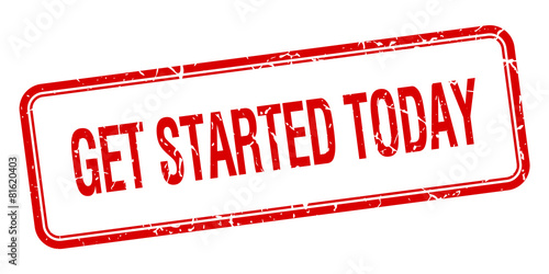 get started today red square grungy vintage isolated stamp