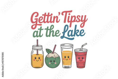 Gettin tipsy at the lake cute drinks with happy faces Lake life Summer Sublimation design
