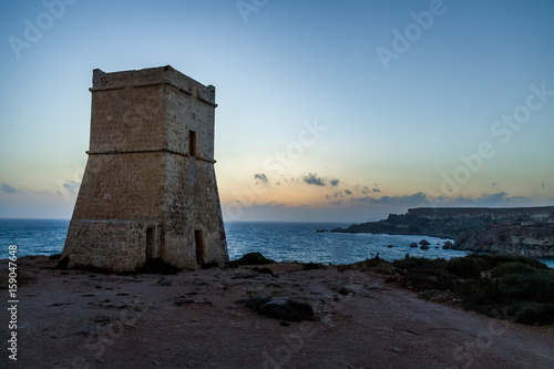Ghajn Tuffieha Tower in Golden Bay at sunset - Malta