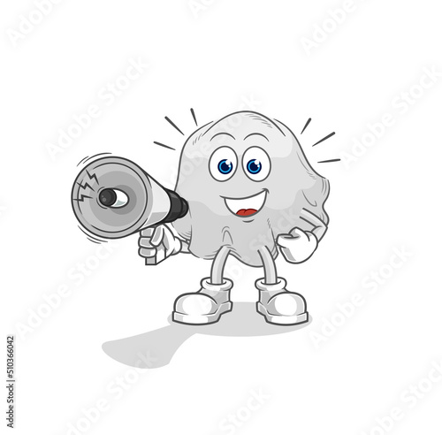 ghost holding hand loudspeakers vector. cartoon character