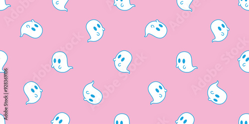 Ghost spooky seamless pattern Halloween vector doodle cartoon scarf isolated gift wrapping paper tile background repeat wallpaper illustration pink design