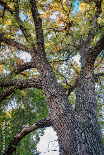 Giant cottonwood tree with fall foliage