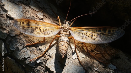 Giant Insect on Tree Bark, Sunlight, Closeup, Nature