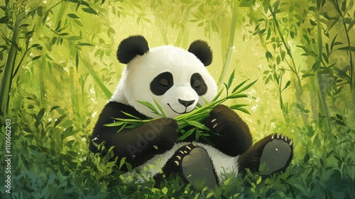Giant panda eating bamboo shoots in serene bamboo forest nature scene tranquil environment