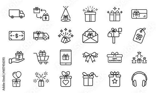 Gift and Delivery Line Icons – Minimal Vector Set for Online Shopping, Gifting, Subscriptions, and Celebration Themes