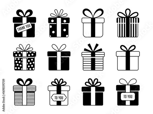 Gift Box Icons Set – Present Package Symbols for Celebration and Design