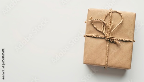 Gift Box Made of Recycled Brown Paper Twine String Christmas and New Year Concept Copy Space