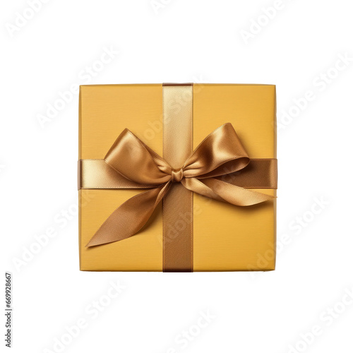 Gift box top view isolated on transparent background. AI generative.