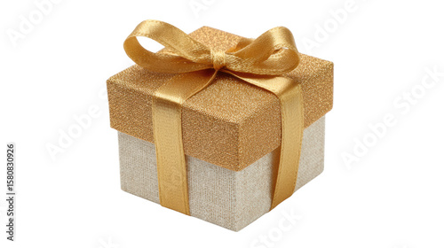Gift box with golden ribbon, ideal for any celebration, isolated on a white background.
