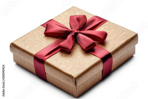Gift Box with Red Ribbon on a White Background