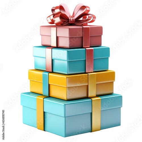 Gift box with ribbon and bow isolated on background. Concept of greeting design for Birthday, Merry Christmas, New Year, holiday, anniversary, valentine, surprise, congratulation or wedding. Generativ