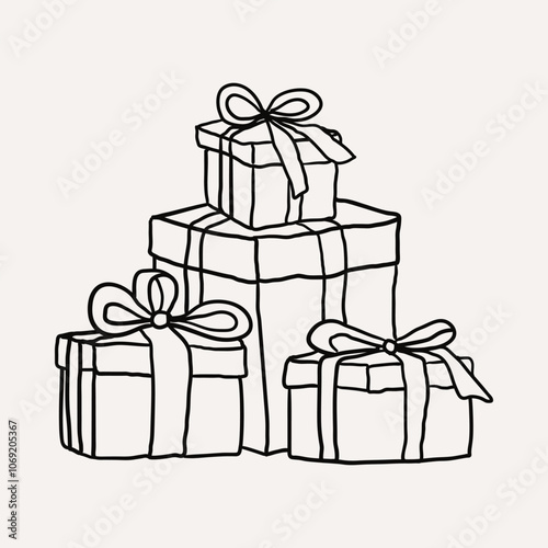 Gift Boxes, Presents. Christmas hand drawn whimsical line art icons 2