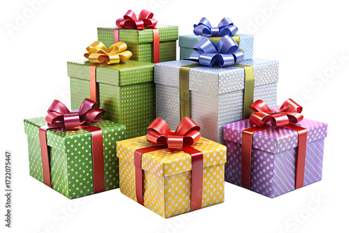 Gift boxes with the red ribbons for Christmas isolated on the transparent background