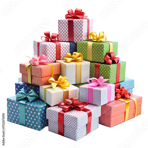 Gift boxes with the red ribbons for Christmas isolated on the transparent background