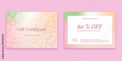 Gift card Design. Pastel holographic background with animal texture
