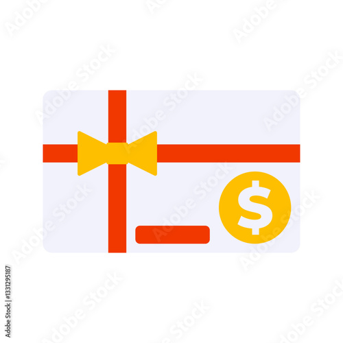 Gift Card Flat design style, gift vouchers with red ribbons, symbolizing discount offers, perfect for e-commerce, promotions, and holiday shopping designs.