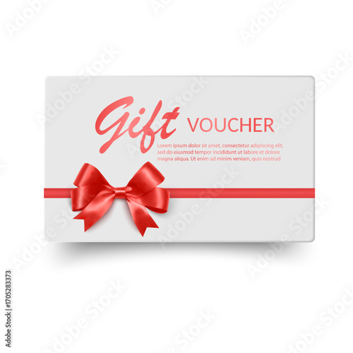 Gift card Gift Voucher with Red Ribbon Bow Certificate, Card, or Invitation Template