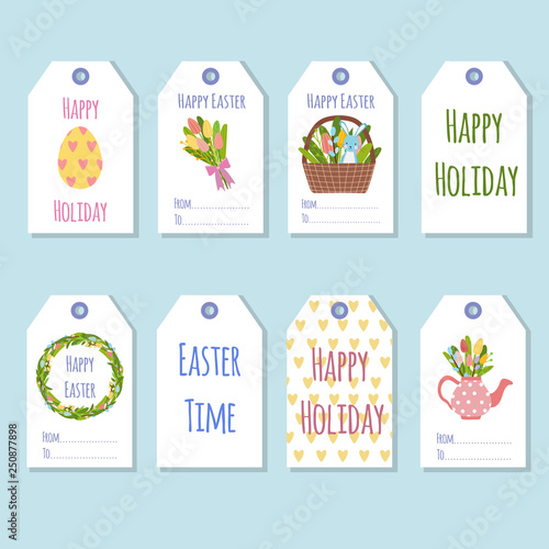 Gift tags for the Easter holiday. Decorating gifts with spring elements.