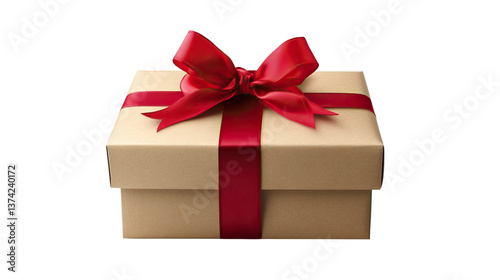 Gift Wrapped in Red: A beautifully wrapped gift box with a classic brown paper finish, tied with a crimson ribbon. The elegant bow adds a touch of sophistication.
