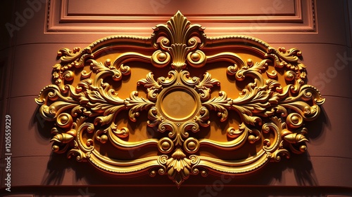 Gilded Stucco Cartouche 3D Render - High Detail, Bright Colors, Deep Mood