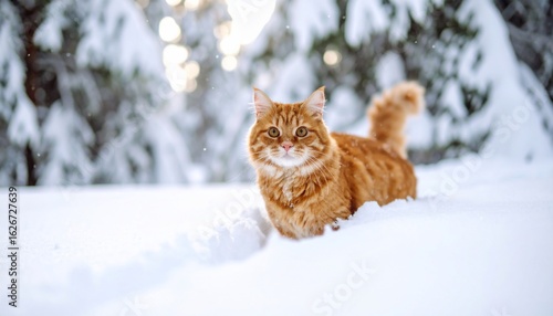 Ginger Cat in Snowy Winter Wonderland