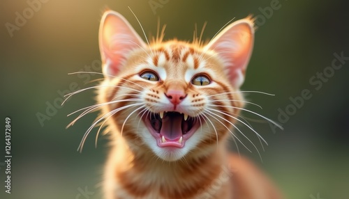 Ginger kitty smiling with a funny expression, Perfect pet for a happy home.