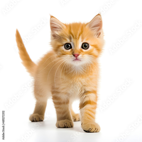Ginger, Orange Cat Kitten Isolated on White Background - Generative AI