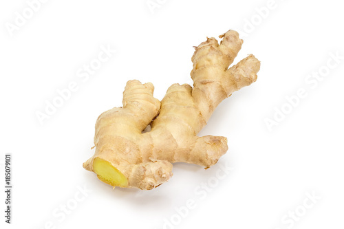 Ginger root closeup on a white background