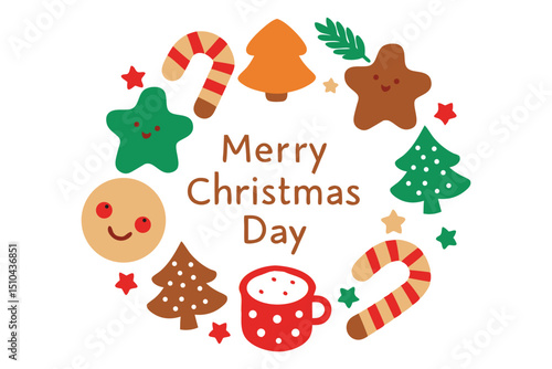 Gingerbread, Candy Canes & Cocoa in Festive Circle – ‘Happy Christmas Day’ Top-Down Vector Design