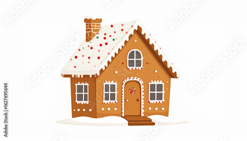 Gingerbread house decorated with icing and colorful candies, delightful Christmas dessert item that evokes holiday cheer
