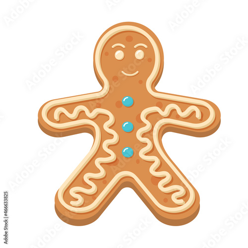 Gingerbread man. Christmas icon. Sweet homemade glazed biscuit.