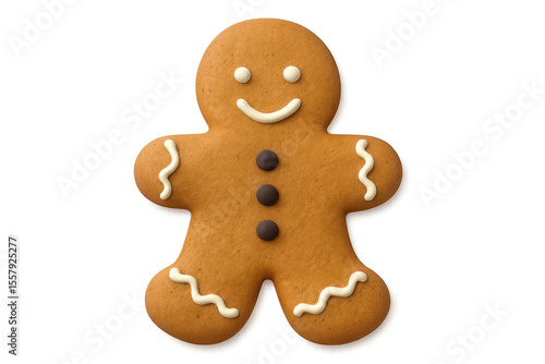 Gingerbread man cookie decorated with icing on transparent background, perfect for christmas projects
