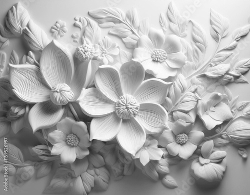Gipsowe kwiaty płaskorzeźba