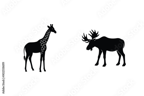 Giraffe And Moose Silhouette Vector Graphic On White Background Illustration