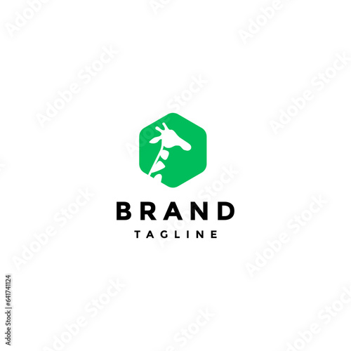 Giraffe Silhouette Inside Hexagon Logo Design. Hexagon Symbol With Giraffe Silhouette Logo Design.